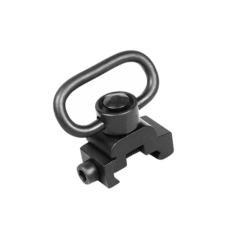 Крепление антабка устанавливается на планку Weaver при помощи бокового стяжного винта. Механизм антабки быстросъемный, при нажатии на центральную кнопку, петля антабки отсоединяется от крепления, которое уже закреплено на оружии.